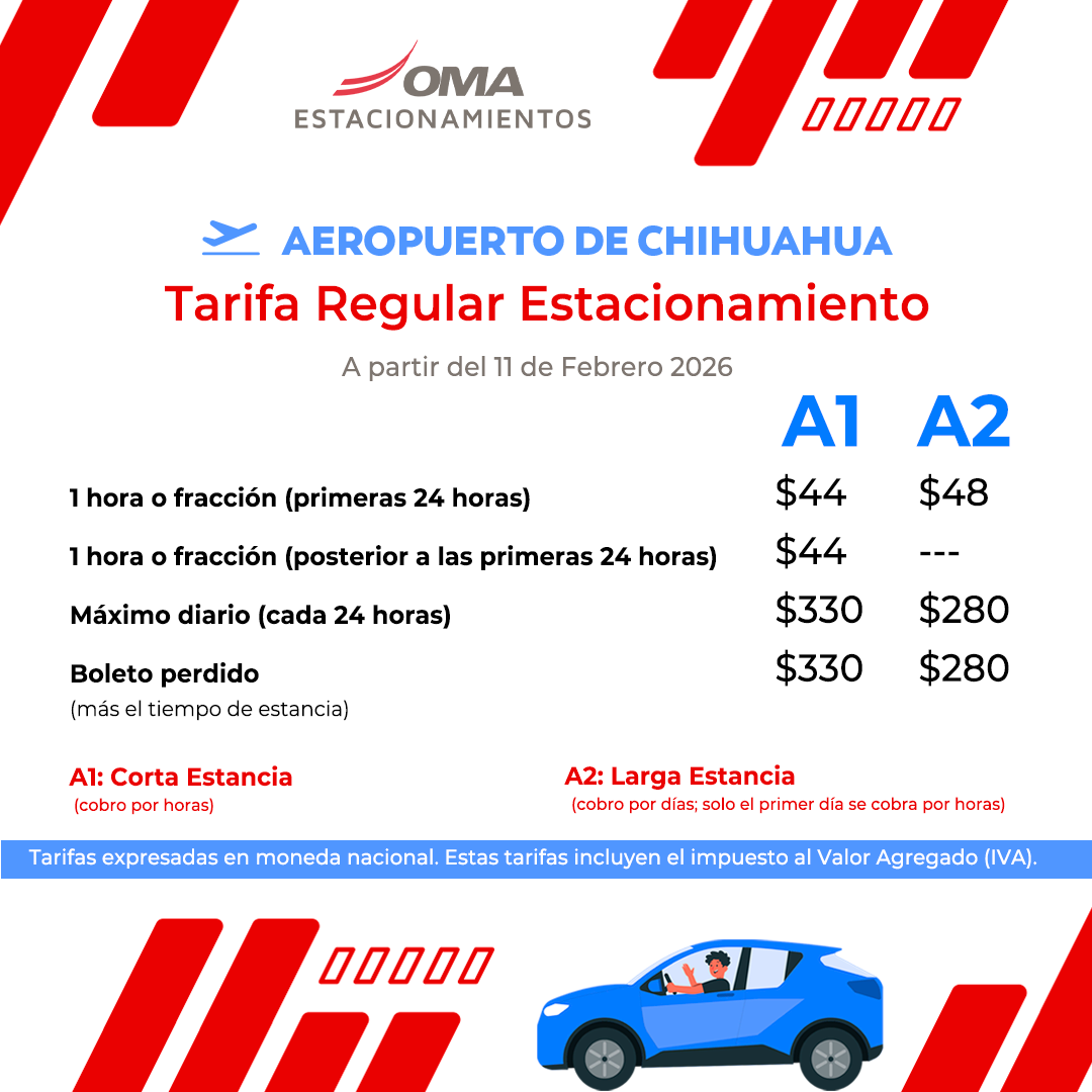 OMA - Grupo Aeroportuario Centro Norte » Estacionamento y Transporte Chihuahua