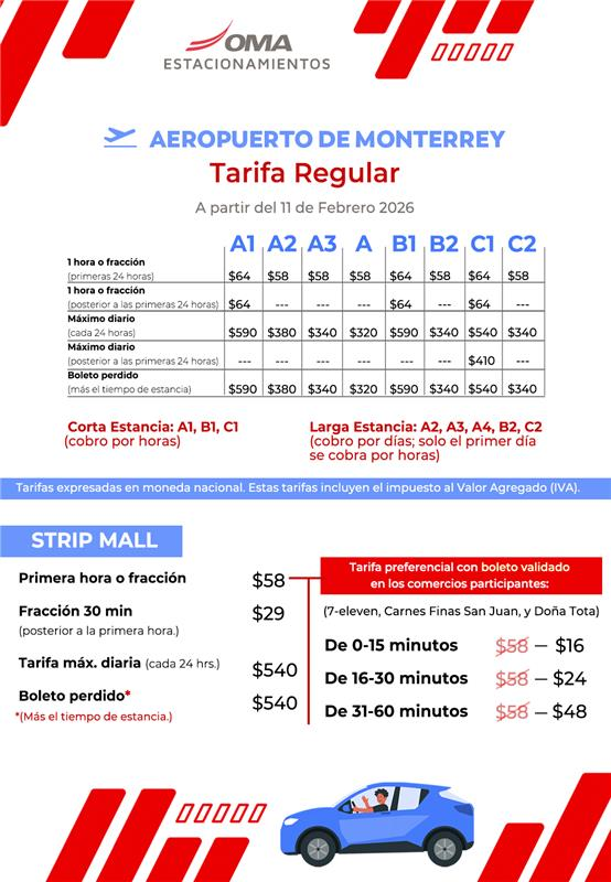 Consulta las tarifas de estacionamiento y elige la opción que mejor se adapte a tus necesidades.